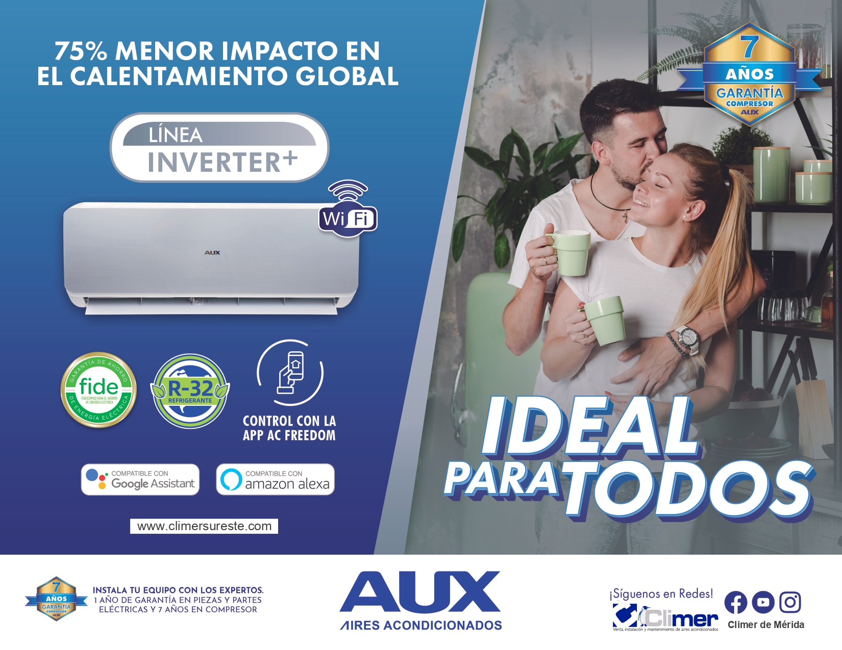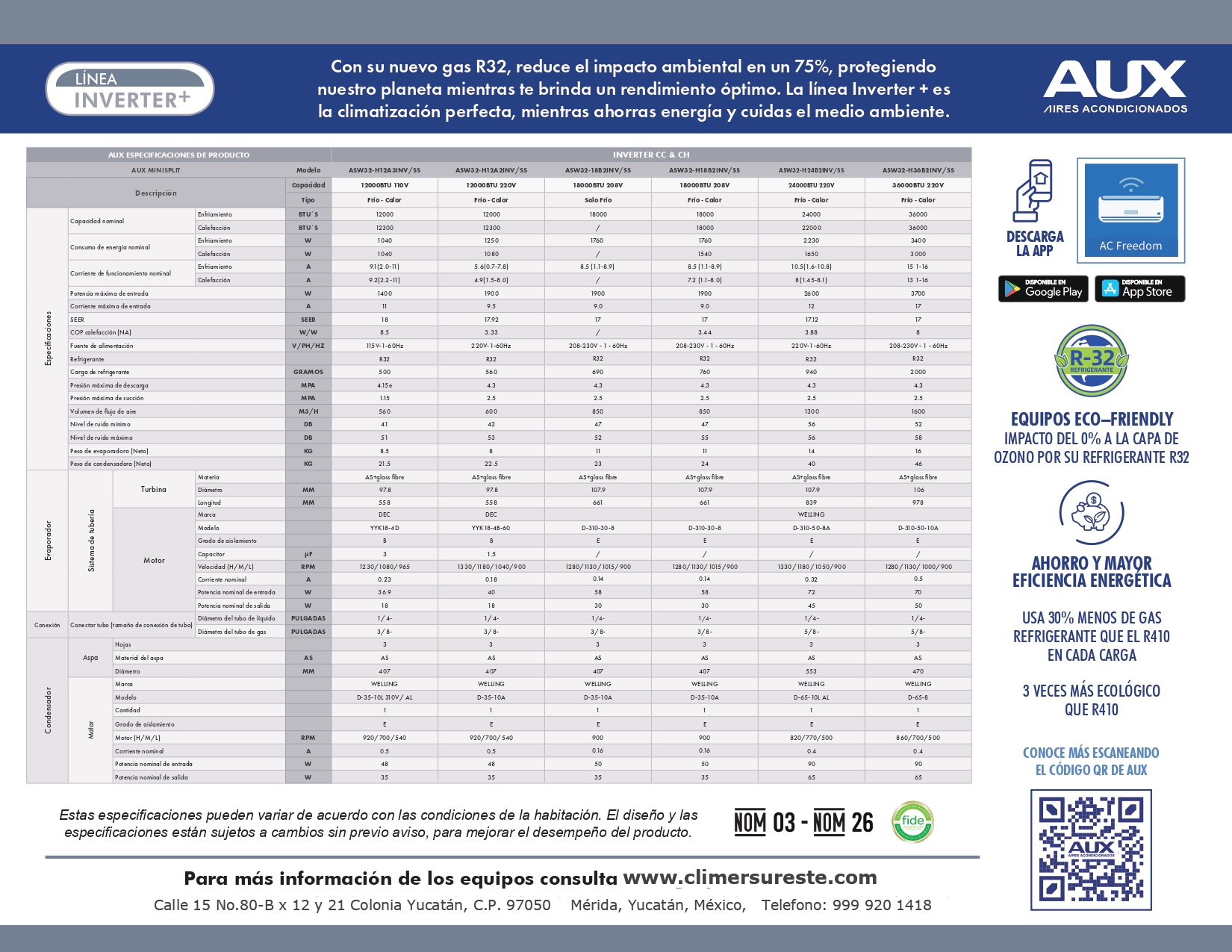 Con Gas Refrigerante R32, capacidades de: